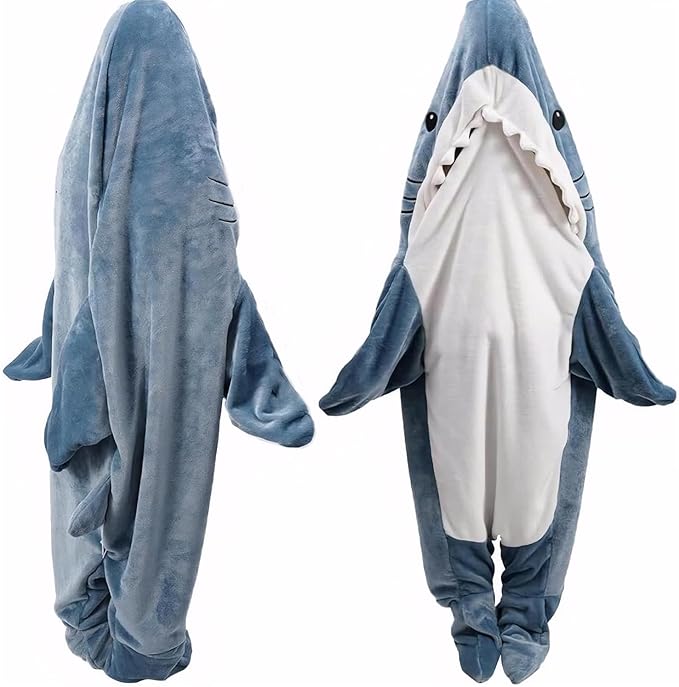 Shark Onesie Shark Blanket, M Size Flannel Blanket Hoodie Wearable Blanket Halloween Costumes for Cosplay, Cartoon Throw