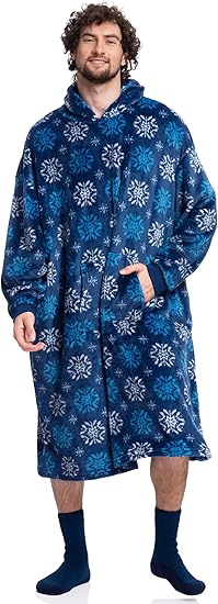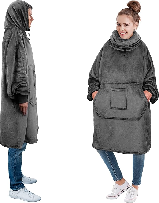 Oversized Flannel Wearable Blanket Hoodie for Adults, One Size Fits All