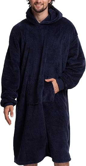 Oversized Wearable Blanket Sweatshirt, Thick Warm Fleece Cozy Sherpa Hooded with Pockets and Sleeves Gift for Adult