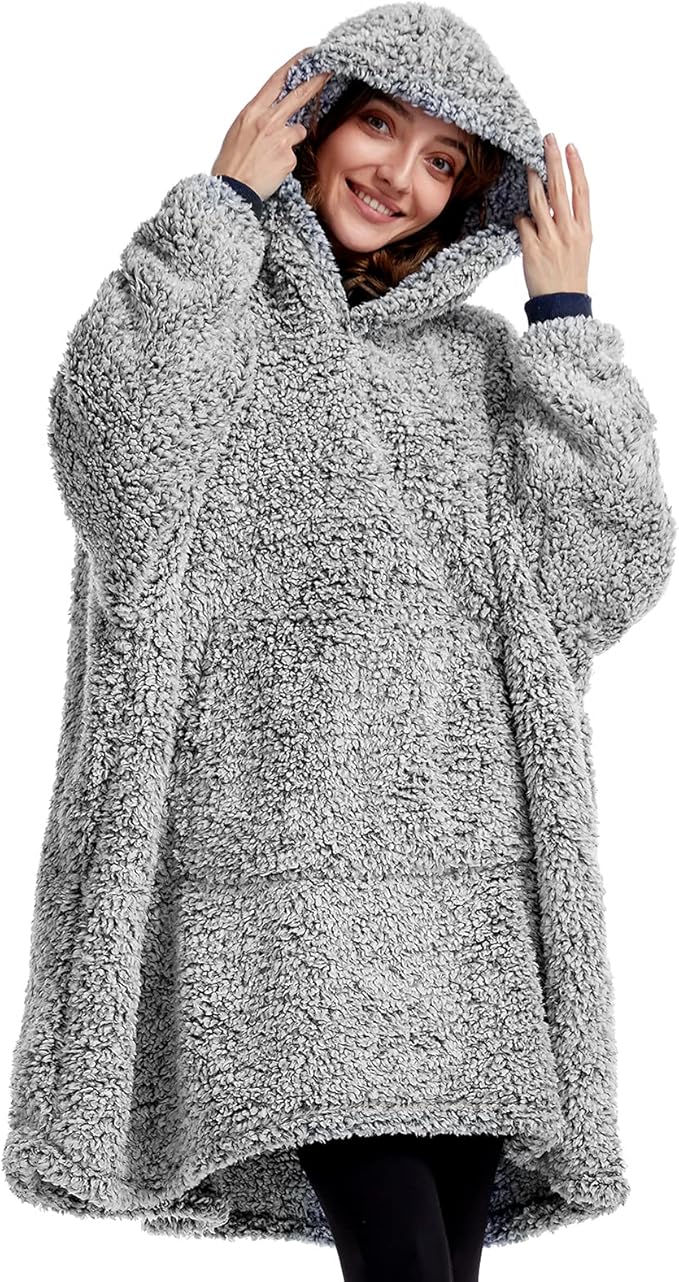 Wearable Blanket Hoodie for Kids & Adults Women Men, One Size Fits All