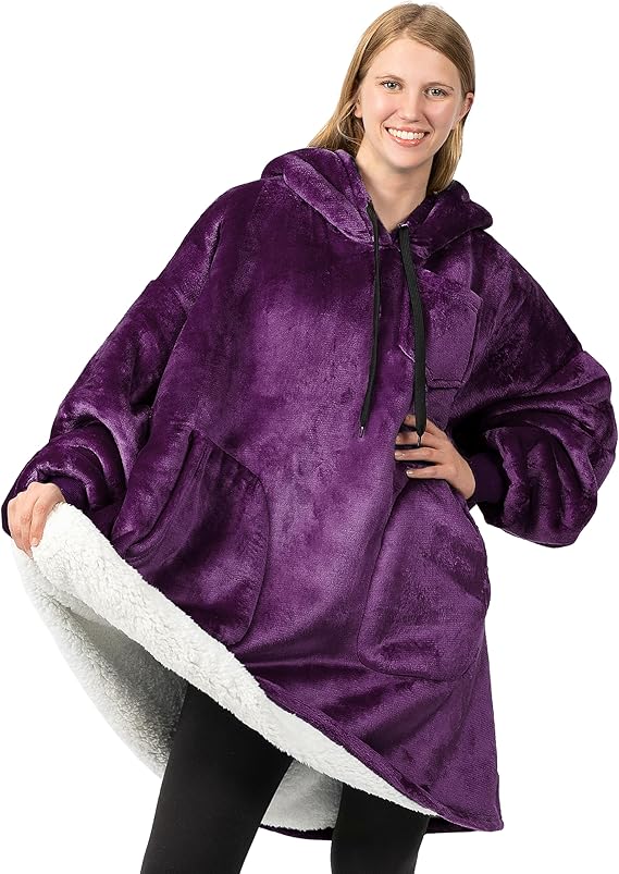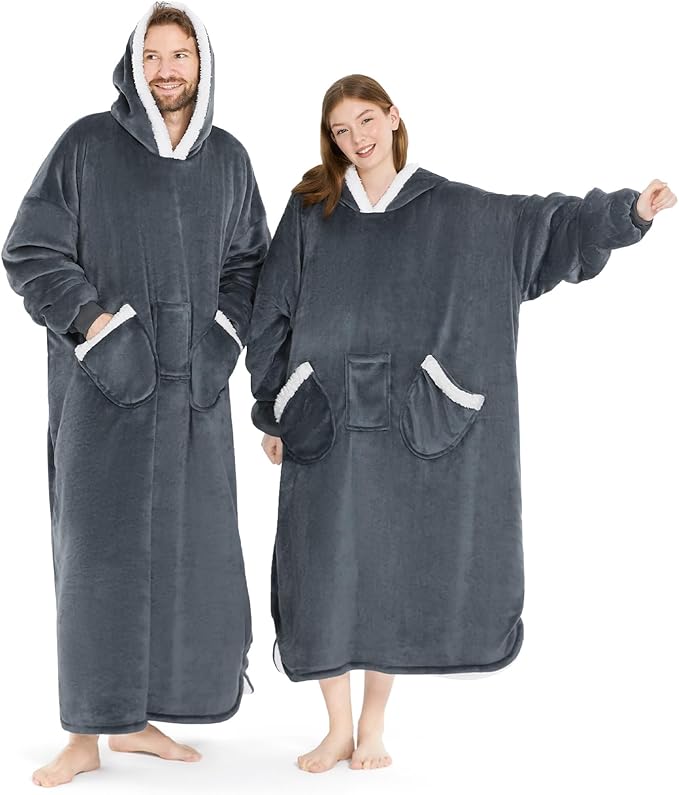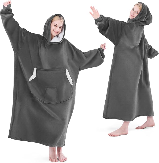 Wearable Blanket Hoodie for Kids & Adults Women Men, One Size Fits All