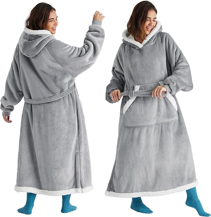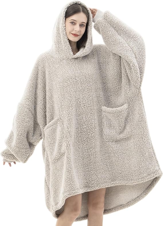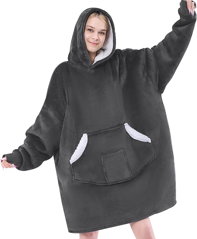 Wearable Blanket Hoodie, Oversized Sherpa Hooded Blanket, One Size Fits All, Grey