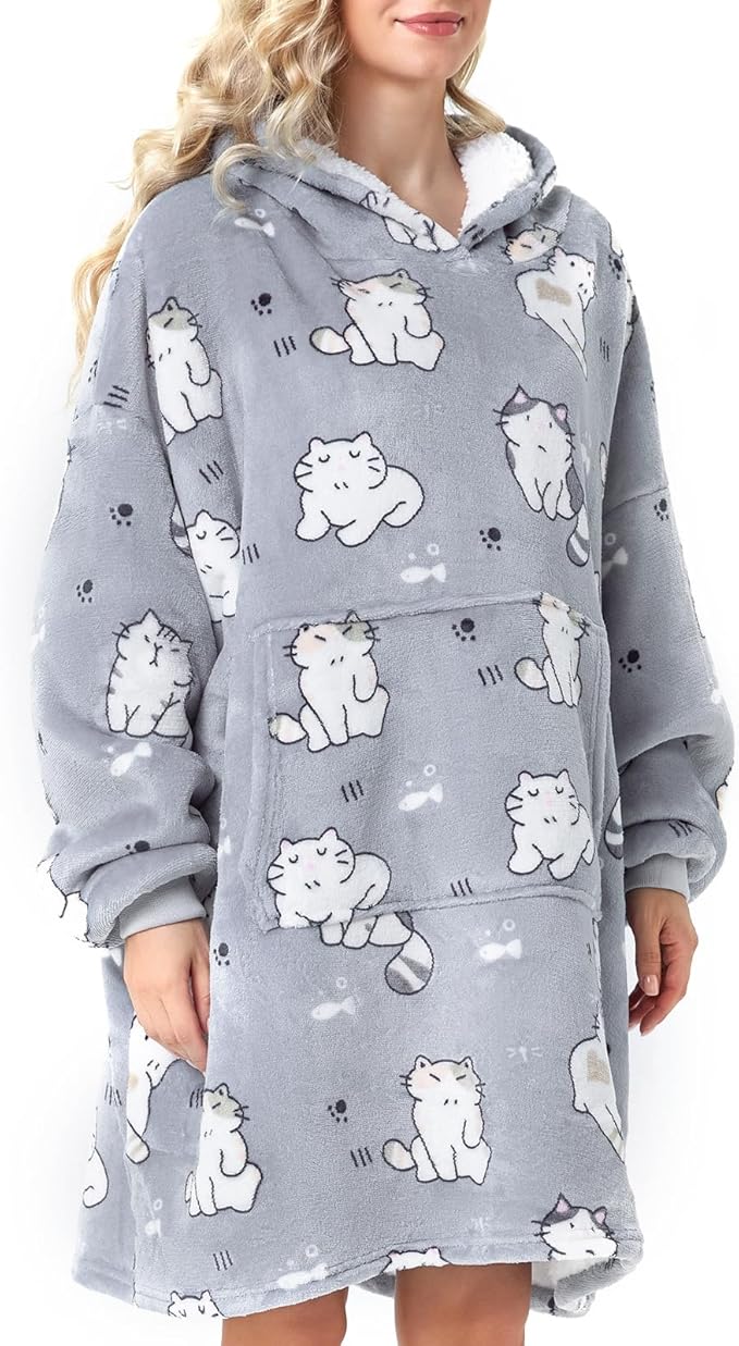 Wearable Blanket Hoodie, Long Hooded Blanket Cat Hoodie Blanket Sweatshirt as Gifts for Women Her Girlfriend, Oversized Sherpa